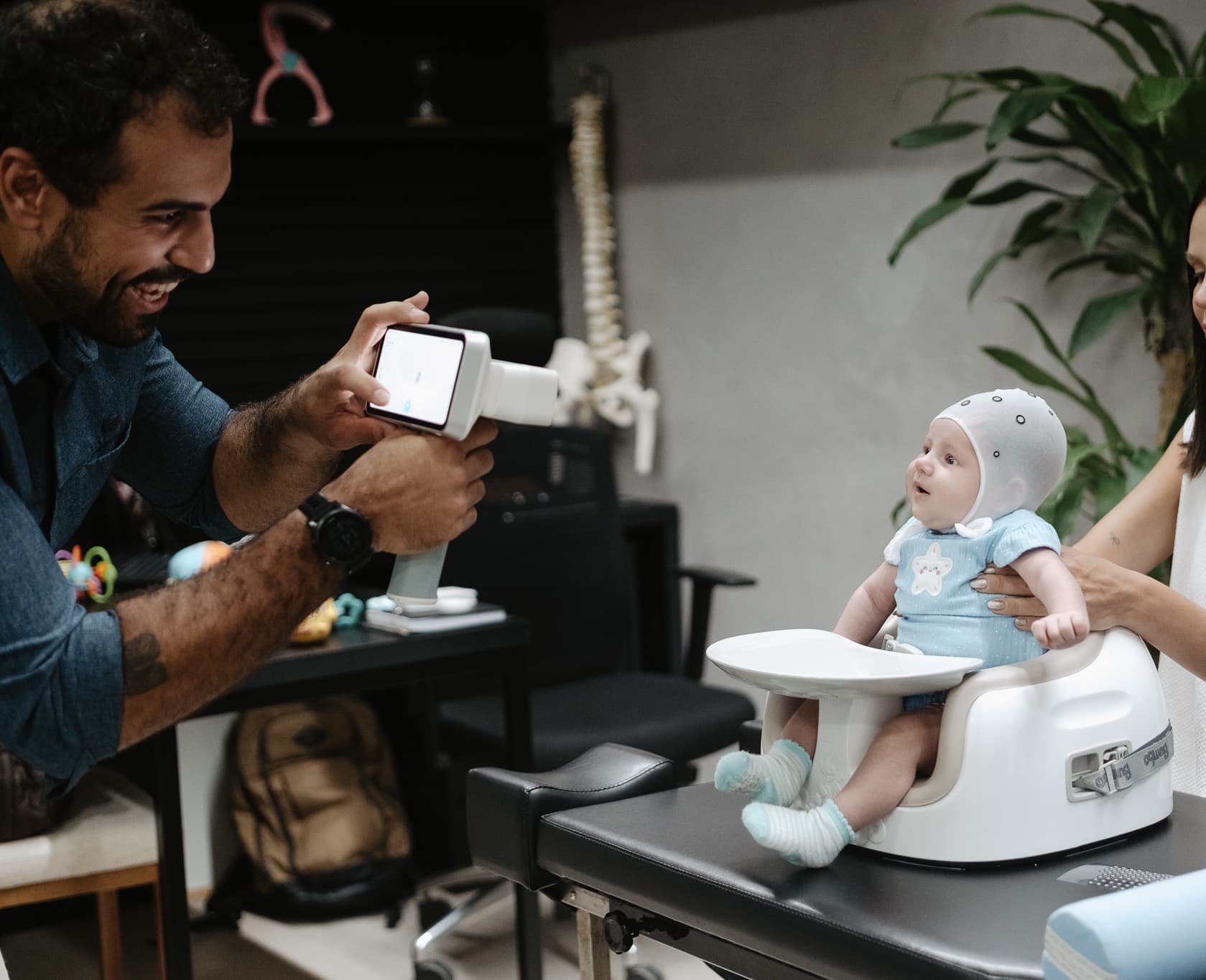 Fazemos o escaneamento digital da cabeça do bebê com tecnologia Baby Symmetry. Rápido, indolor e extremamente preciso.